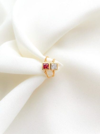 El Anillo Oliva es una pieza delicada y versátil, diseñada para aportar color y textura a cualquier composición de accesorios. Su estructura presenta un aro con acabado dorado y una línea central de piedras que evocan la frescura natural de la esmeralda y la profundidad de la amatista.