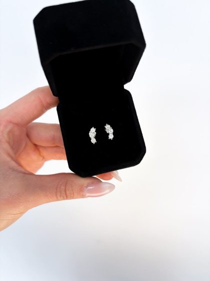 Estos aretes tipo topo destacan por su estructura estilizada y delicada, ofreciendo un brillo sutil que realza el rostro sin exagerar. Son ideales tanto para uso diario como para ocasiones especiales, convirtiéndose en un accesorio versátil que eleva cualquier outfit con elegancia.